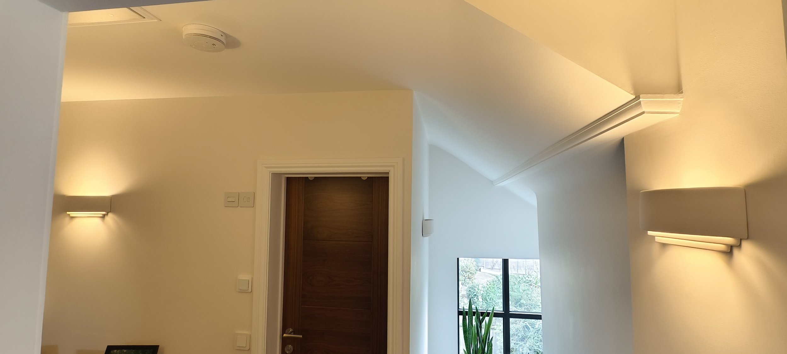 Supply and installation of decorative coving along the junction between walls and ceilings where specified. This provides a clean transition and enhances the finished appearance of the rooms.